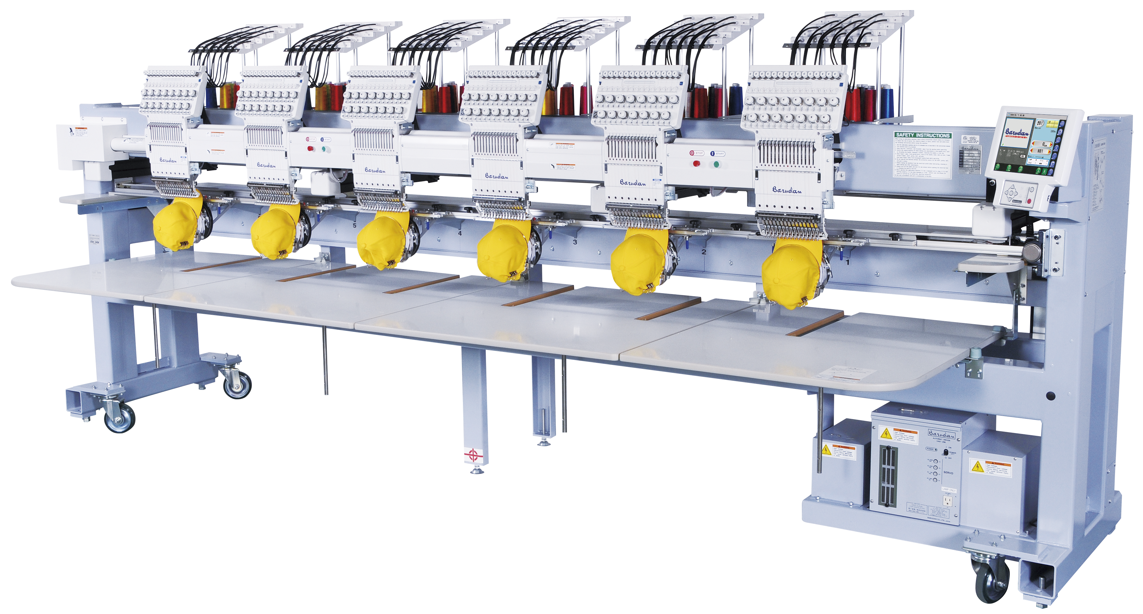 The bridge type head configuration allows for a large 450 mm x 520 mm sewing field (approximately 17¾ x 20½ inches) whether choosing a 2-head, 4-head, 6-head or 8-head model, you will see increased production with exceptional quality. Narrow sewing field (450X380mm) is also available on our 6-head 380 and 8-head 380 machines. Effortlessly change from sewing flats to caps with no tools with the Barudan Advantage EX Cap Frame system. Powerful Servo motors and positive needle drive technology allow you to expertly sew on a variety of garments from fine silk to heavy leather.